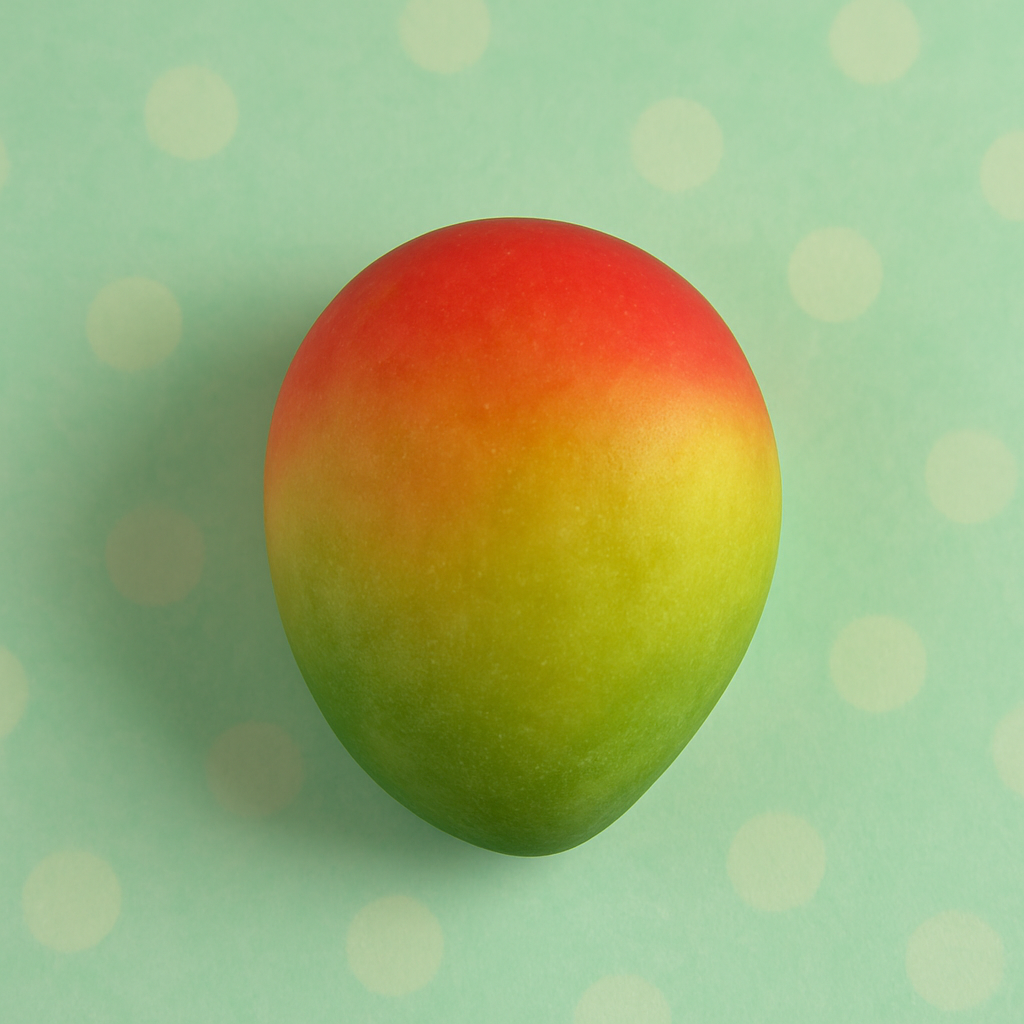 Bouchée trompe-l’œil mangue : cœur mangue-passion acidulé, croustillant subtil, enrobage chocolat blanc aérographié dégradé. Fraîche, fondante et artisanale.